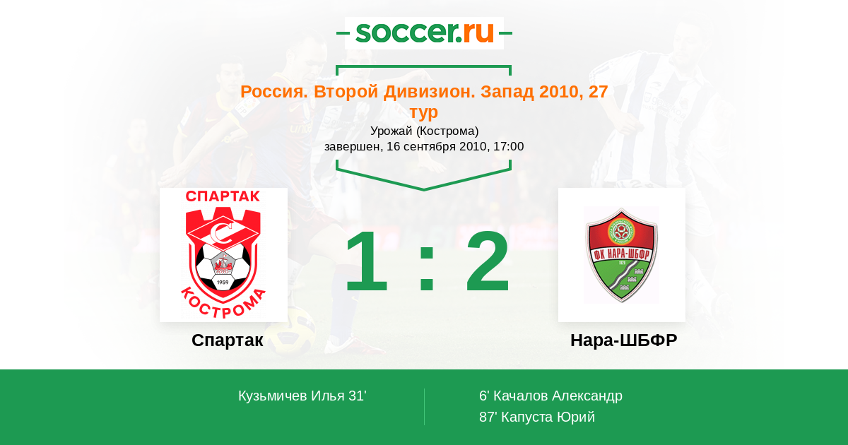 Протокол матча Спартак Кострома против Нара-ШБФР