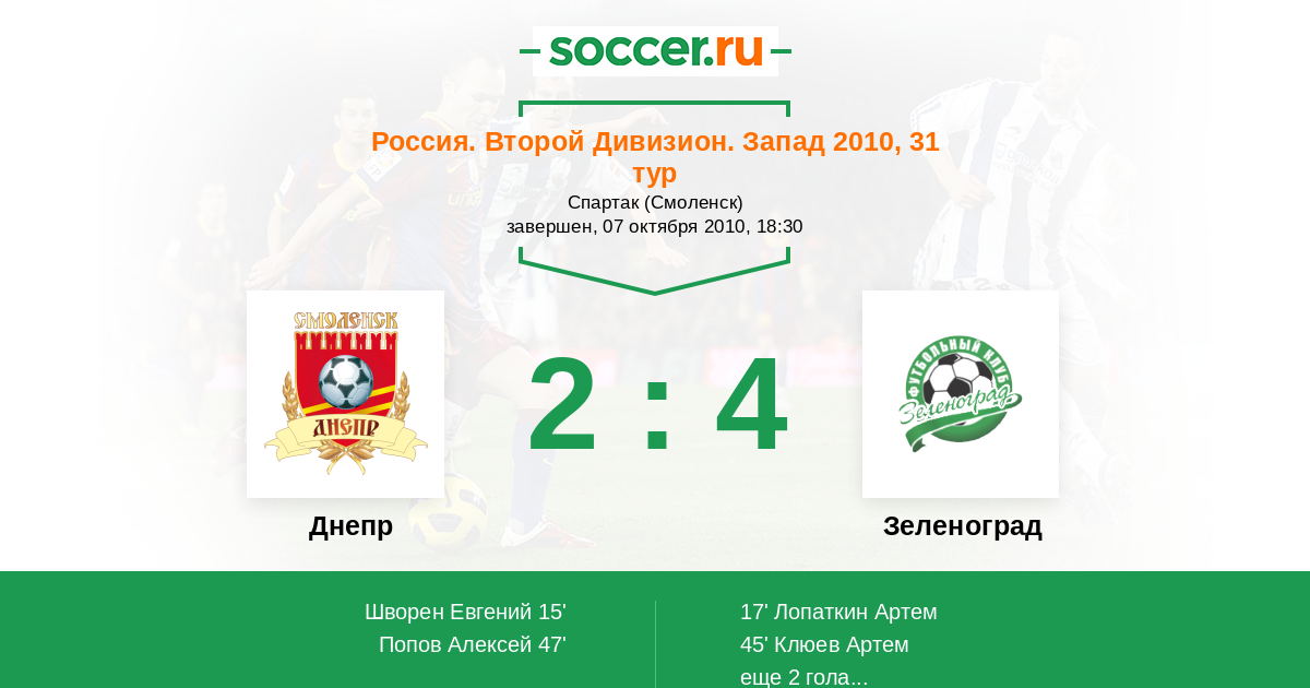 Протокол матча Днепр против Зеленоград
