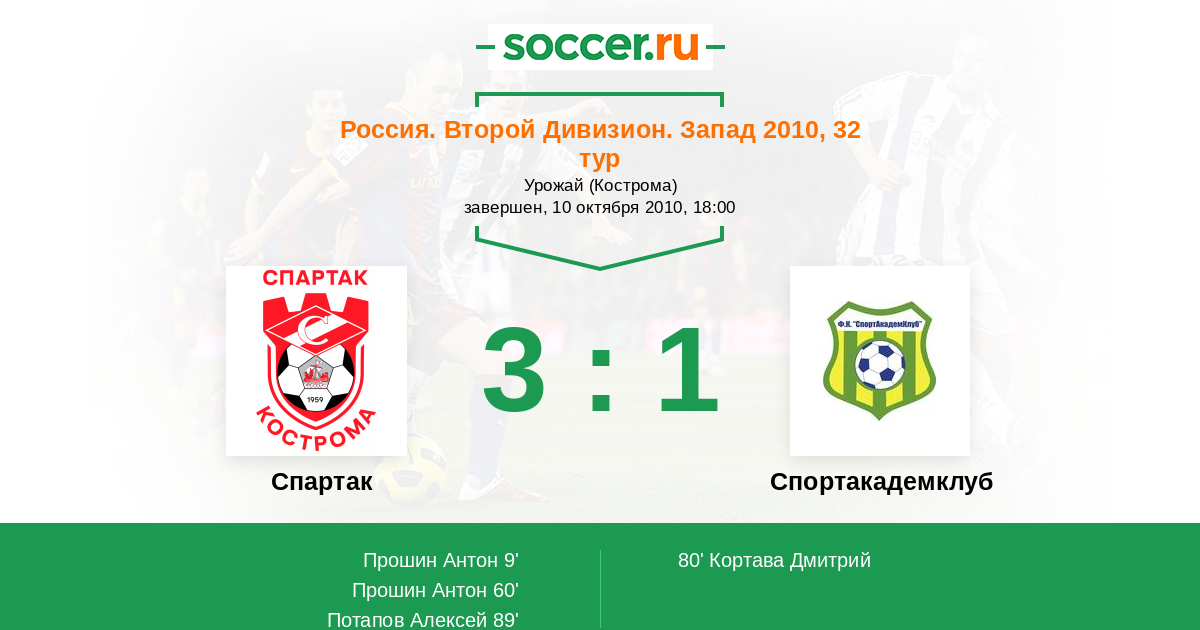 Протокол матча Спартак Кострома против Спортакадемклуб