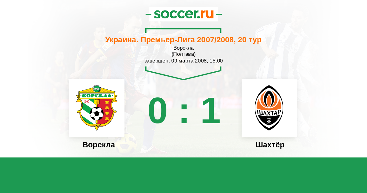 Украина. Премьер-Лига 07.04.2007 Шахтёр Логотип футбольный клуб Шахтёр (Донецк) 2:1 Логотип футбольный клуб Ворскла (Полтава) Ворскла