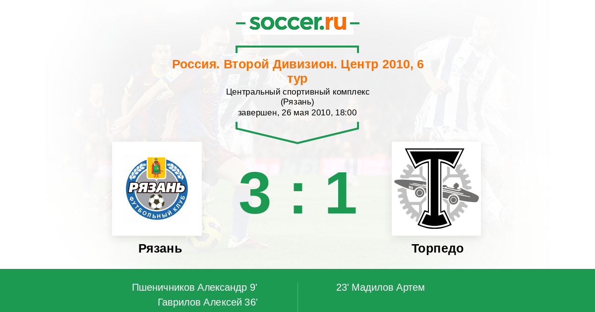 Протокол матча Звезда Рз против Торпедо