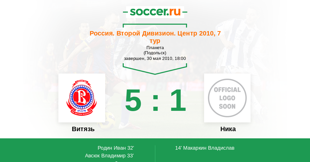Протокол матча Витязь против Ника