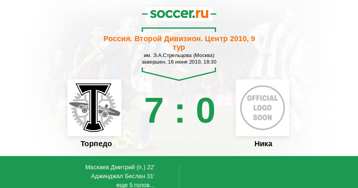 Протокол матча Торпедо против Ника