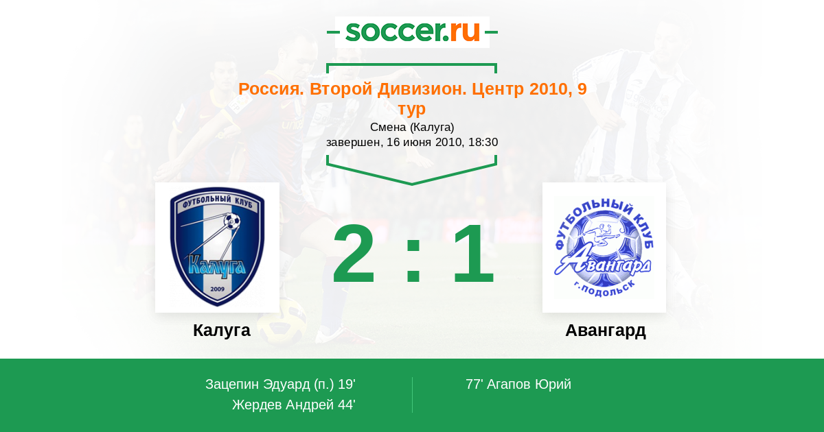 Протокол матча Калуга против Авангард