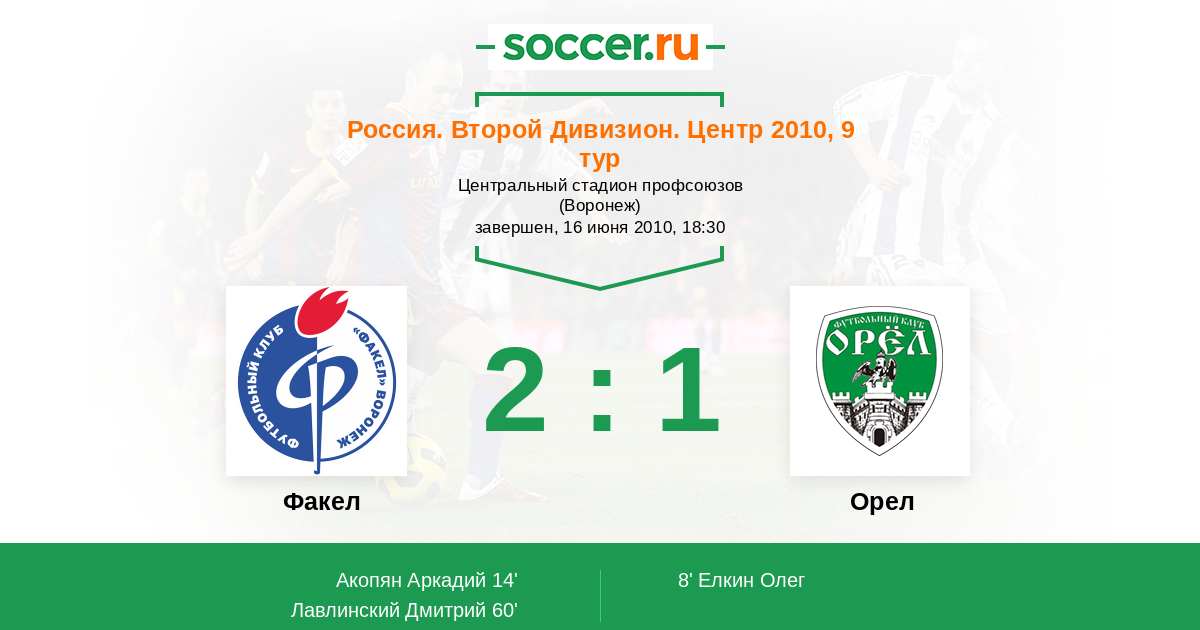 Протокол матча Факел против Орел
