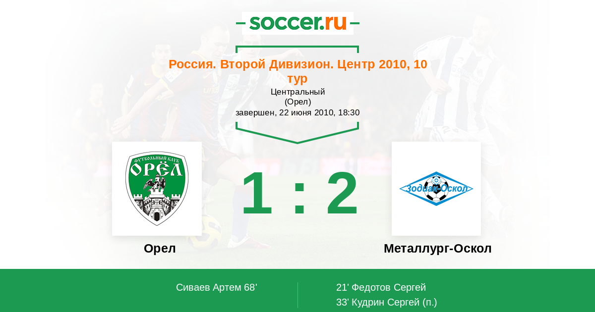Протокол матча Орел против Металлург-Оскол