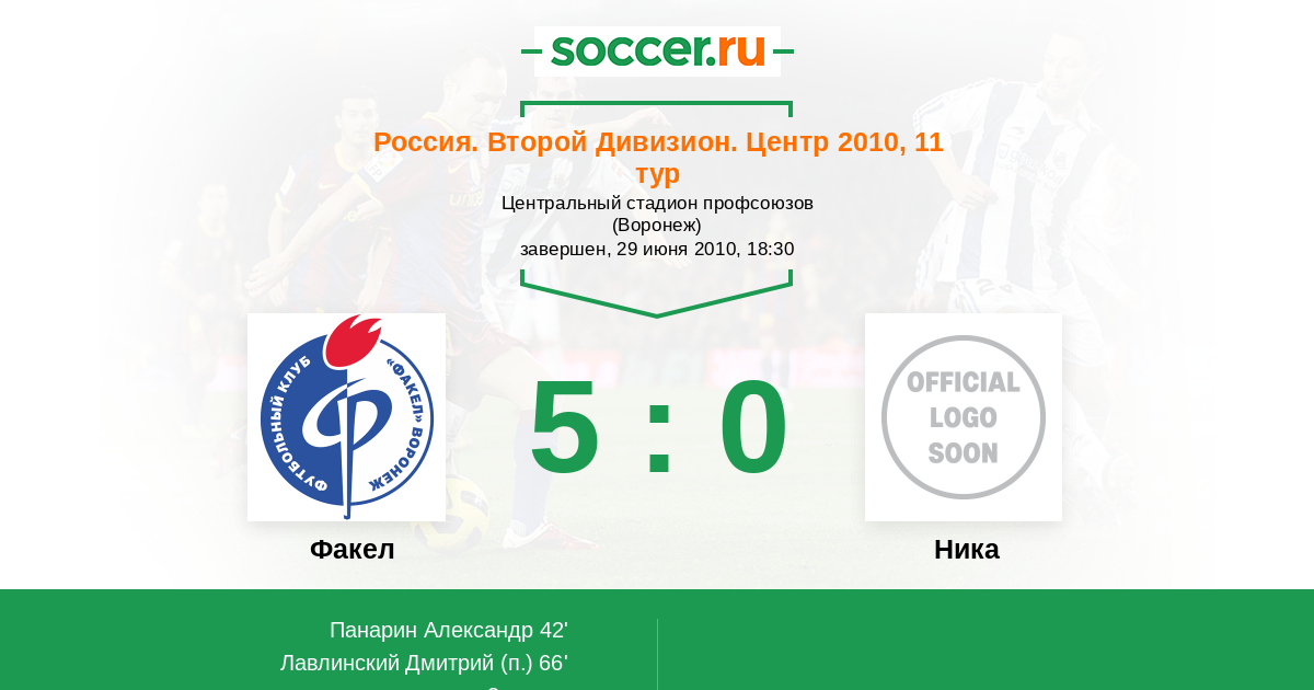 Протокол матча Факел против Ника