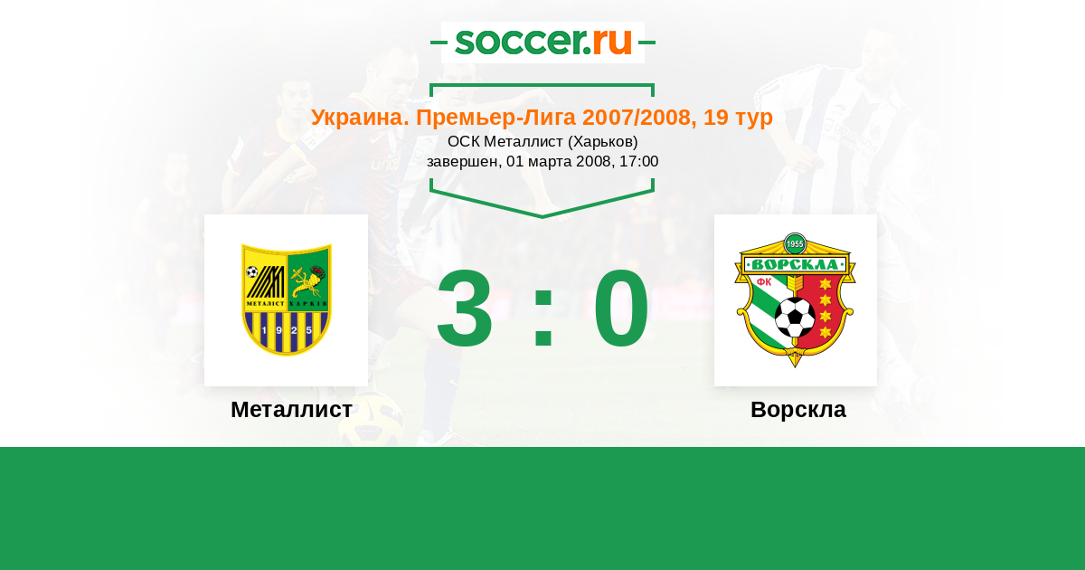 Украина. Премьер-Лига 27.09.2008 Металлист Логотип футбольный клуб Металлист  (Харьков) 3:1 Логотип футбольный клуб Ворскла (Полтава) Ворскла