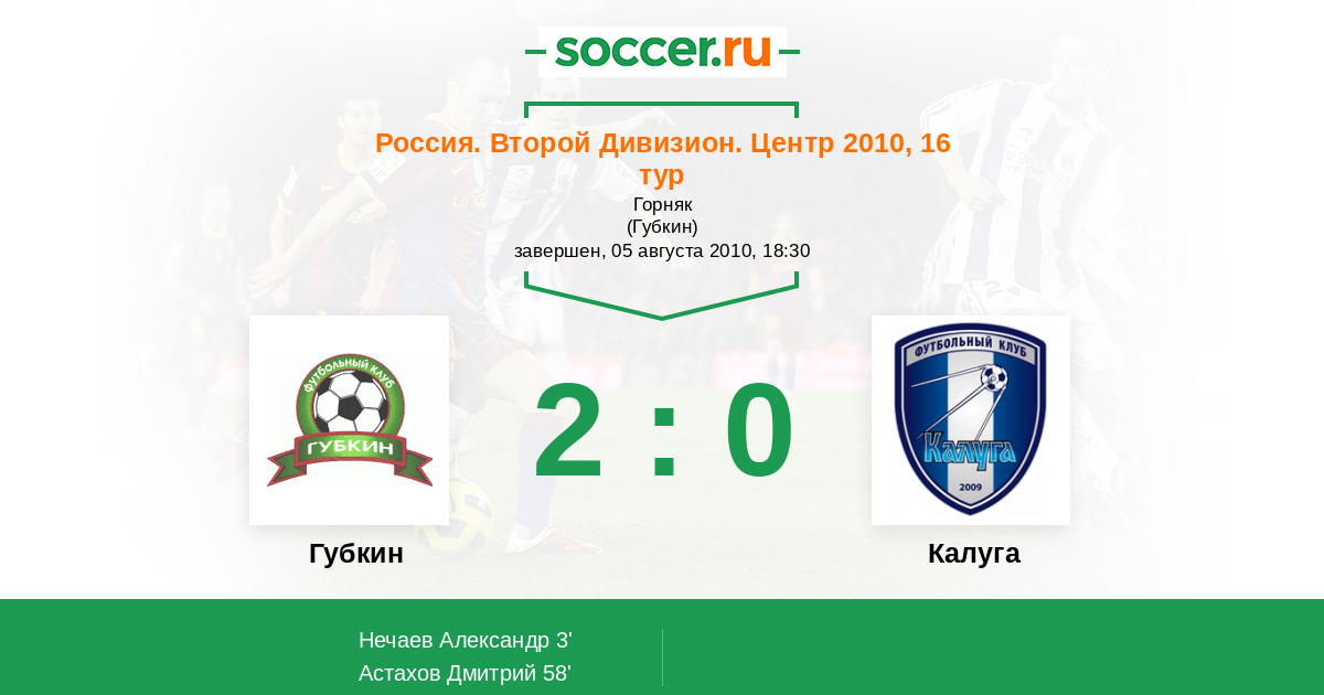 Протокол матча Губкин против Калуга