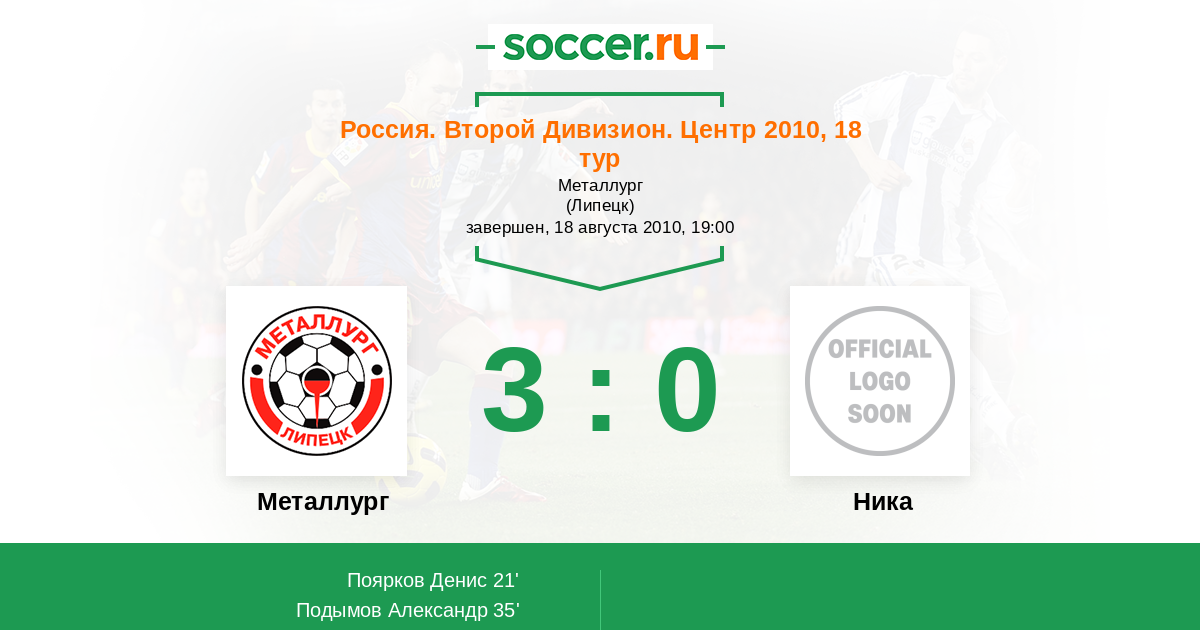 Протокол матча Металлург против Ника