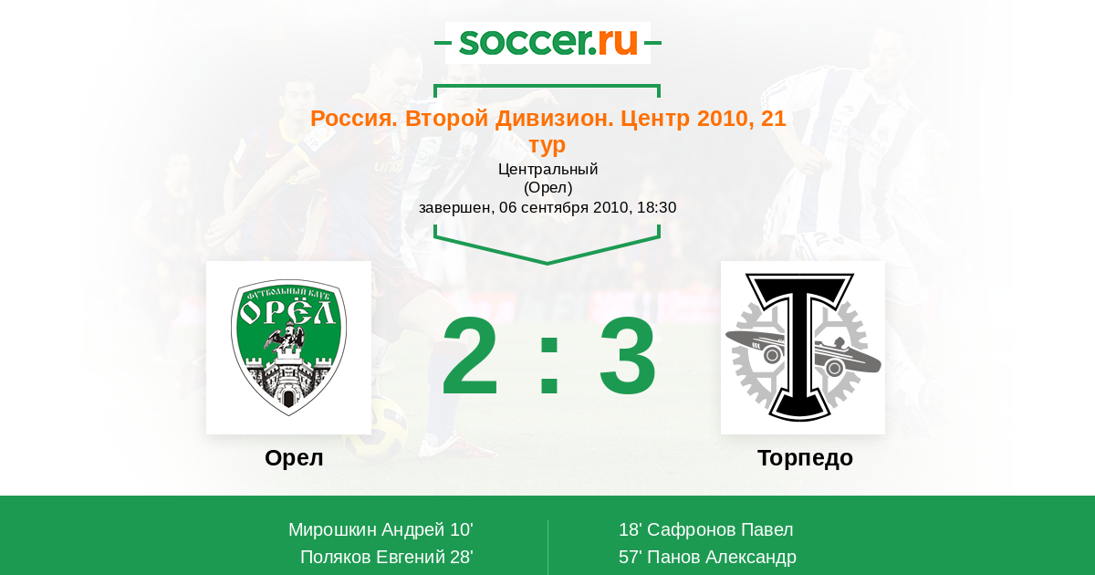 Протокол матча Орел против Торпедо