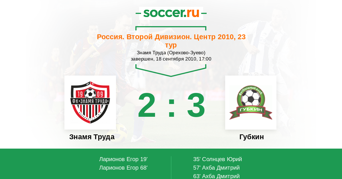 Протокол матча Знамя Труда против Губкин