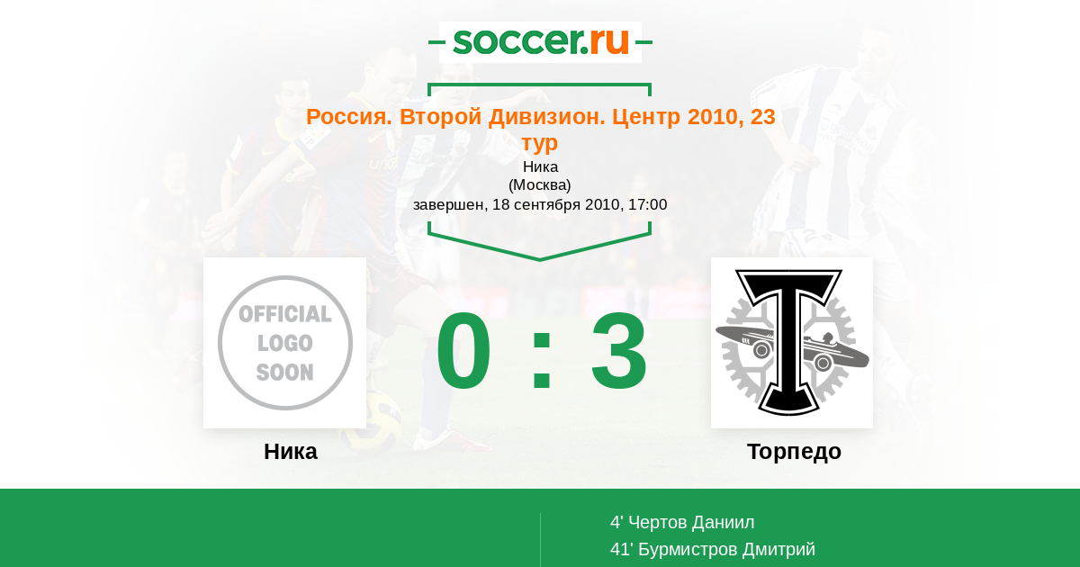 Протокол матча Ника против Торпедо