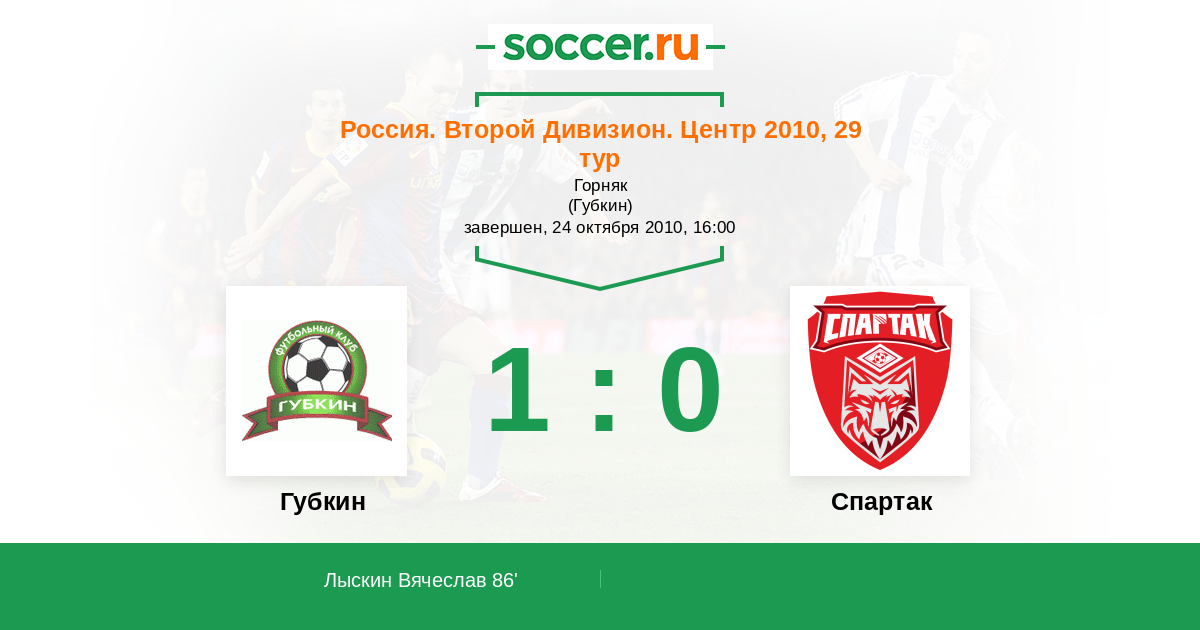 Протокол матча Губкин против Спартак