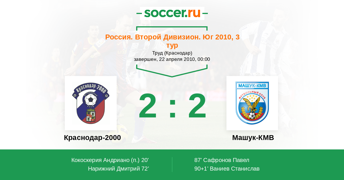 Протокол матча Краснодар-2000 против Машук-КМВ