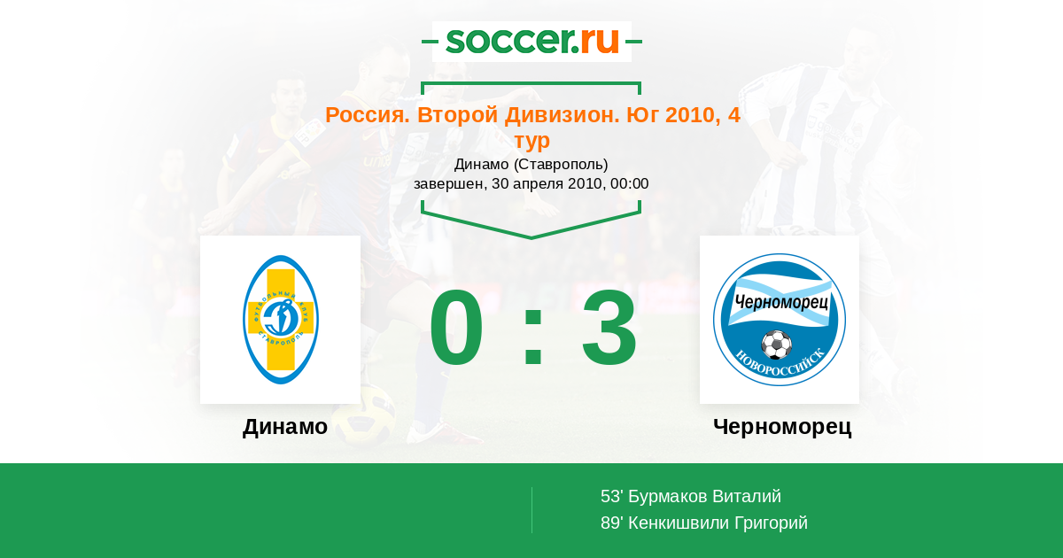 Протокол матча Динамо Ставрополь против Черноморец