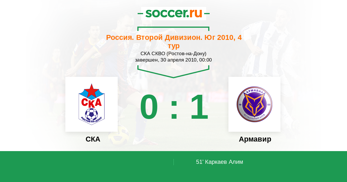 Протокол матча СКА против Торпедо Армавир