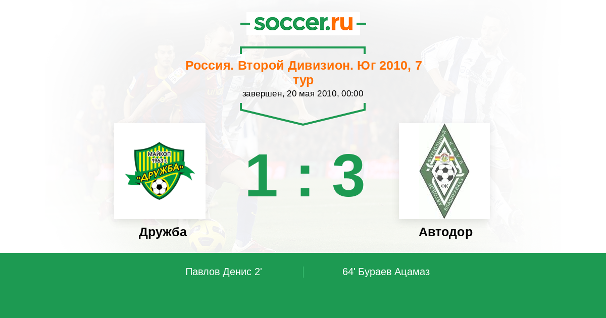 Протокол матча Дружба против Автодор