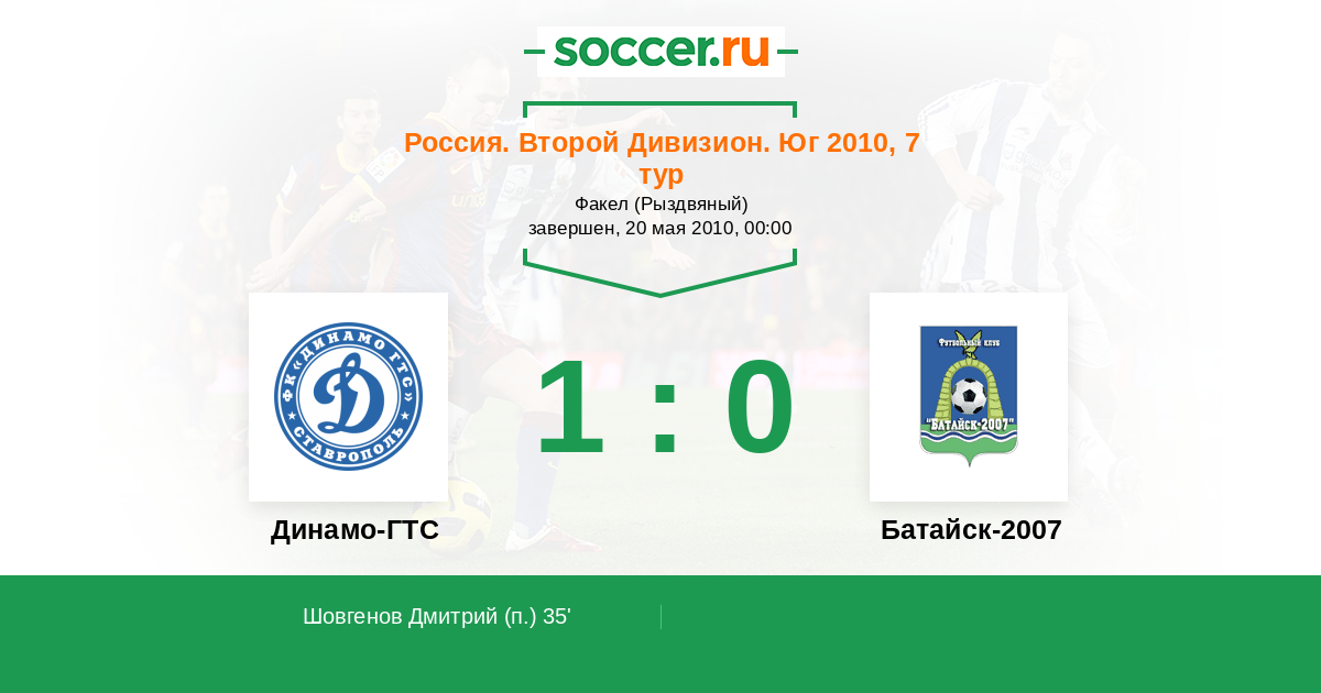 Протокол матча Кавказтрансгаз-2005 против Батайск-2007