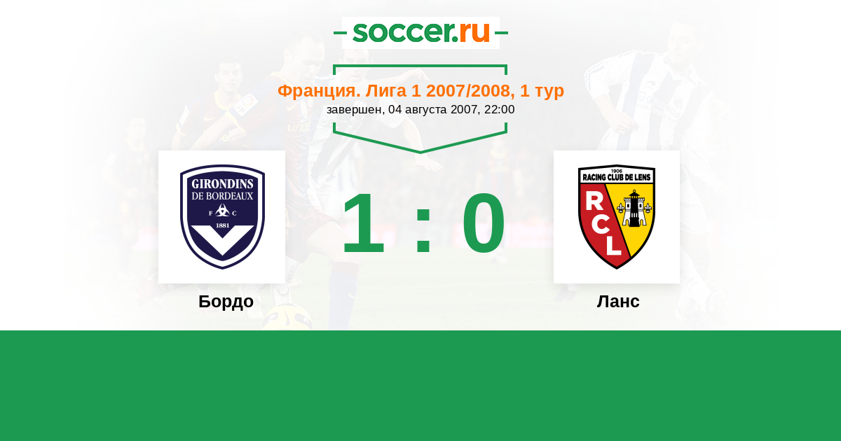 Франция. Лига 1 29.04.2007 Бордо Логотип футбольный клуб Бордо 1:0 Логотип футбольный клуб Ланс Ланс