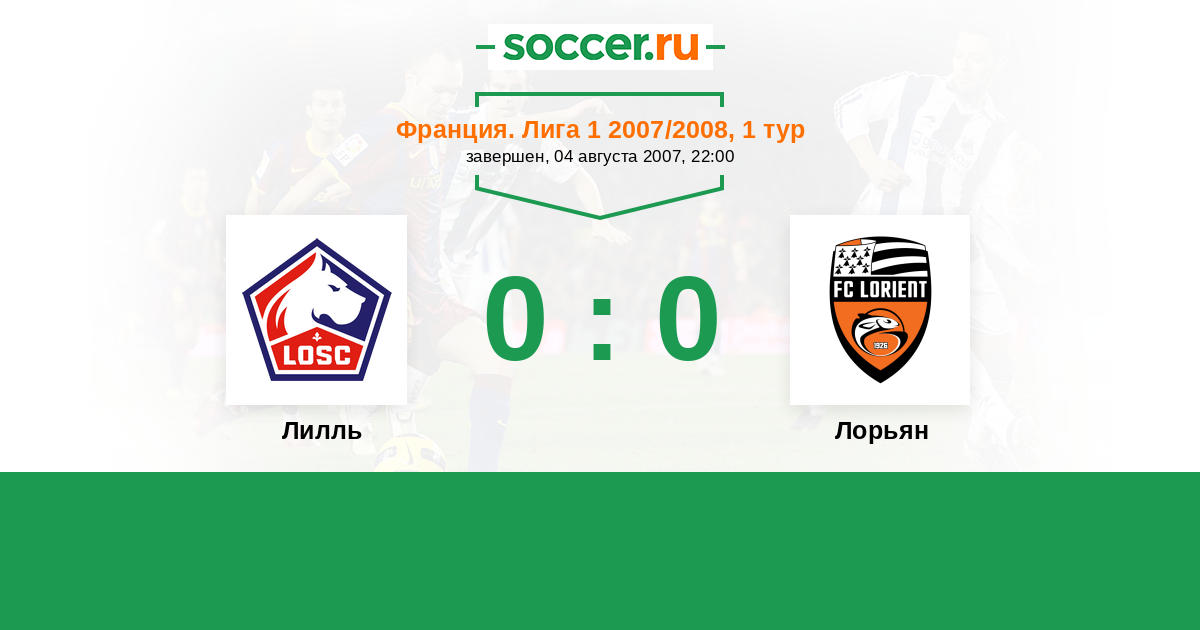 Франция. Лига 1 10.03.2007 Лорьян Логотип футбольный клуб Лорьян 0:0 Логотип футбольный клуб Лилль Лилль