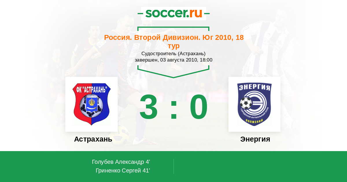 Протокол матча Астрахань против Энергия