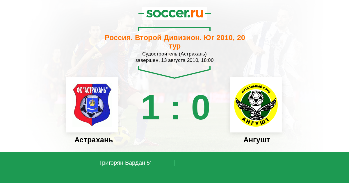 Протокол матча Астрахань против Ангушт