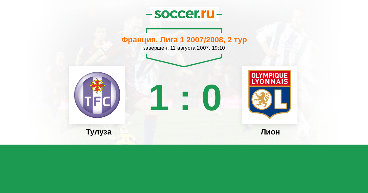 Франция. Лига 1 11.08.2006 Лион Логотип футбольный клуб Лион 1:1 Логотип футбольный клуб Тулуза Тулуза