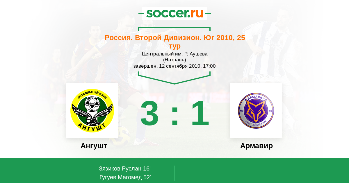 Протокол матча Ангушт против Торпедо Армавир