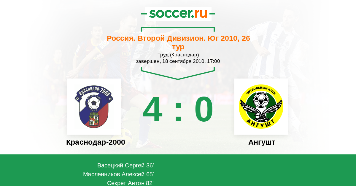 Протокол матча Краснодар-2000 против Ангушт
