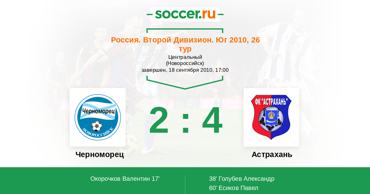 Протокол матча Черноморец против Астрахань