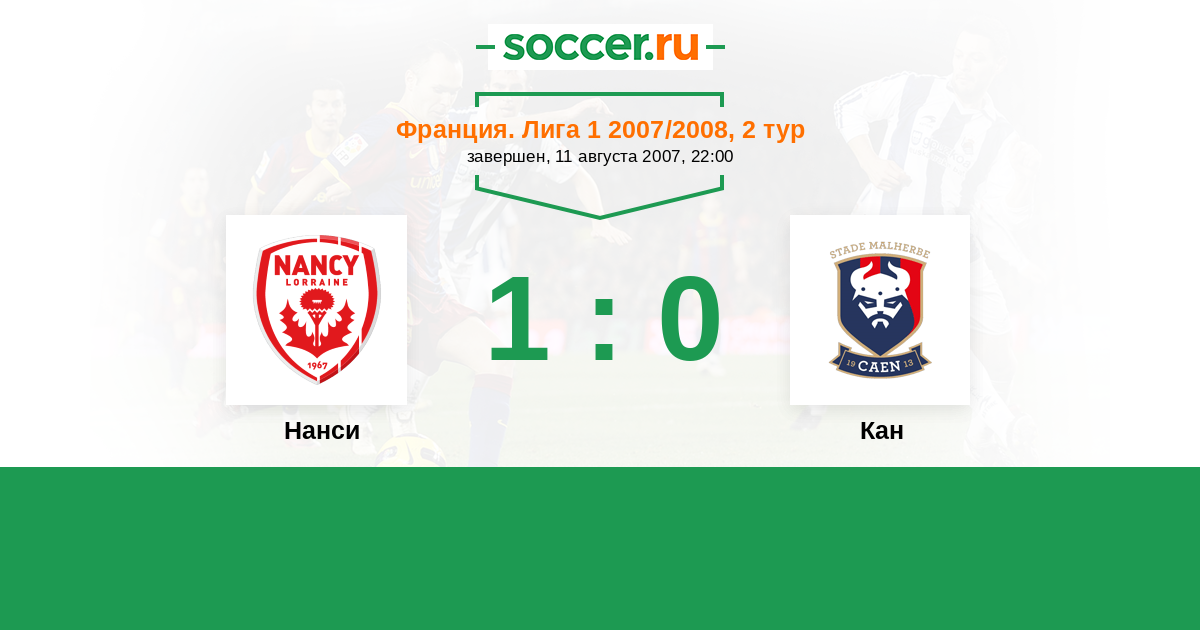 Франция. Лига 1 12.01.2008 Кан Логотип футбольный клуб Кан 0:0 Логотип футбольный клуб Нанси Нанси