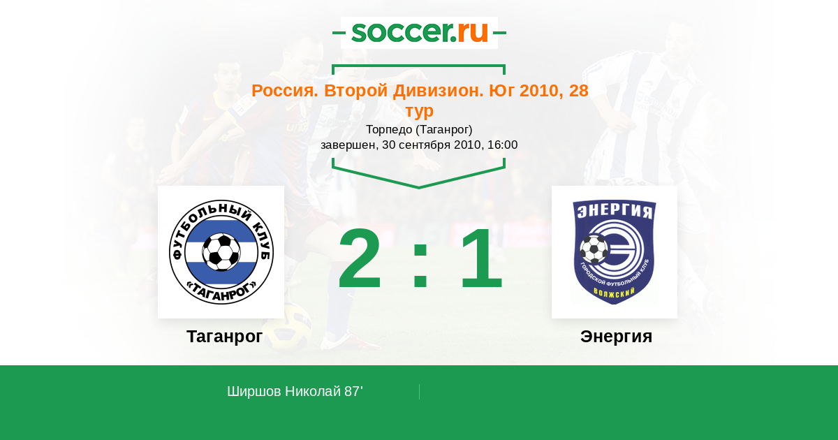 Протокол матча Таганрог против Энергия