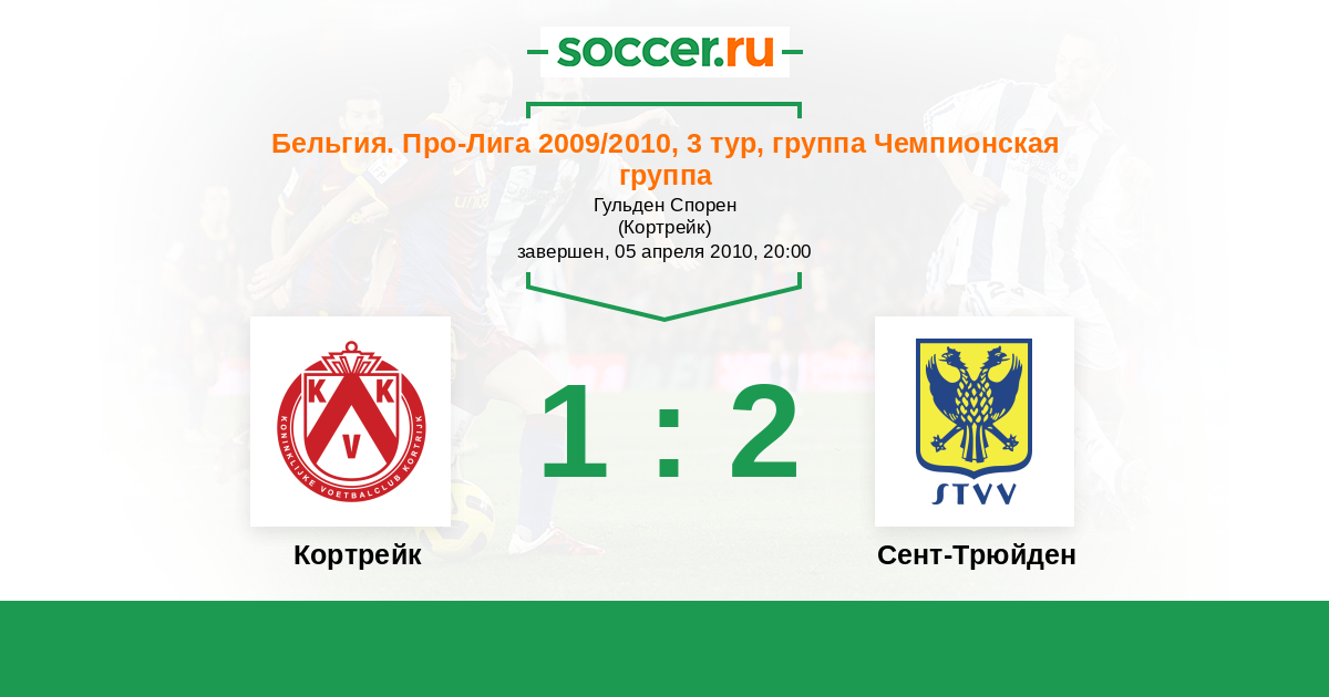 Бельгия. Про-Лига 17.04.2010 Сент-Трюйден Логотип футбольный клуб Сент-Трюйден (Синт-Трёйден) 1:0 Логотип футбольный клуб Кортрейк Кортрейк