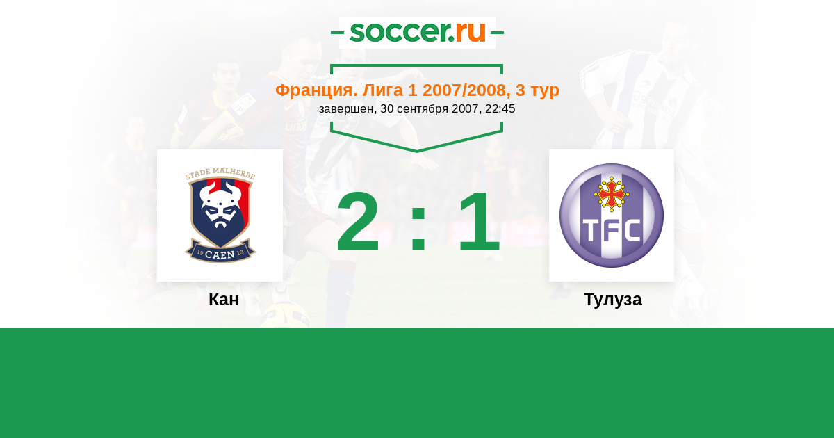 Франция. Кубок Лиги 26.09.2007 Тулуза Логотип футбольный клуб Тулуза 2:2 Логотип футбольный клуб Кан Кан