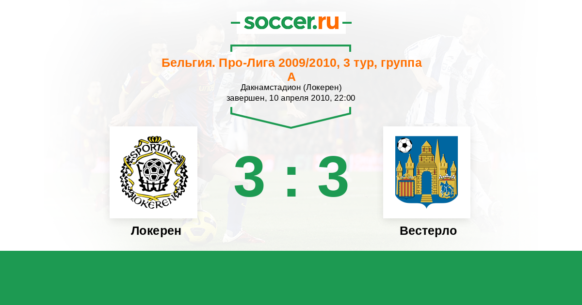 Бельгия. Про-Лига 14.04.2010 Вестерло Логотип футбольный клуб Вестерло 2:0 Логотип футбольный клуб Локерен Локерен