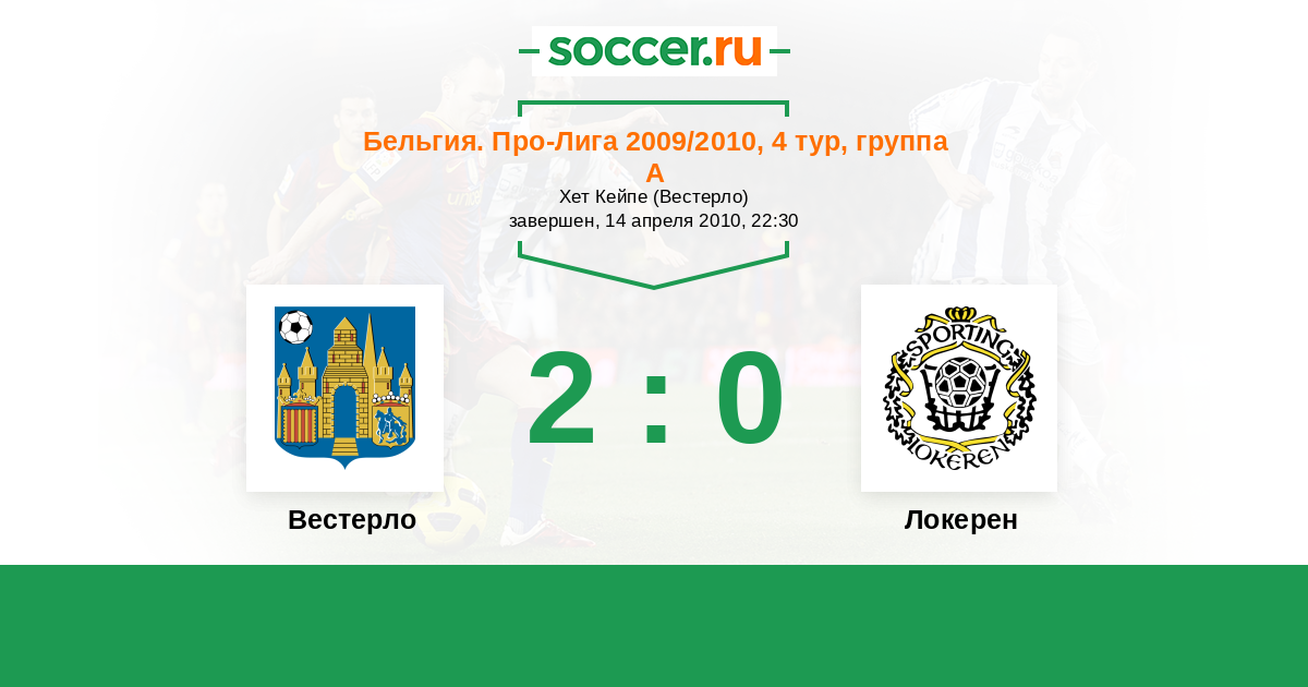 Бельгия. Про-Лига 10.04.2010 Локерен Логотип футбольный клуб Локерен 3:3 Логотип футбольный клуб Вестерло Вестерло