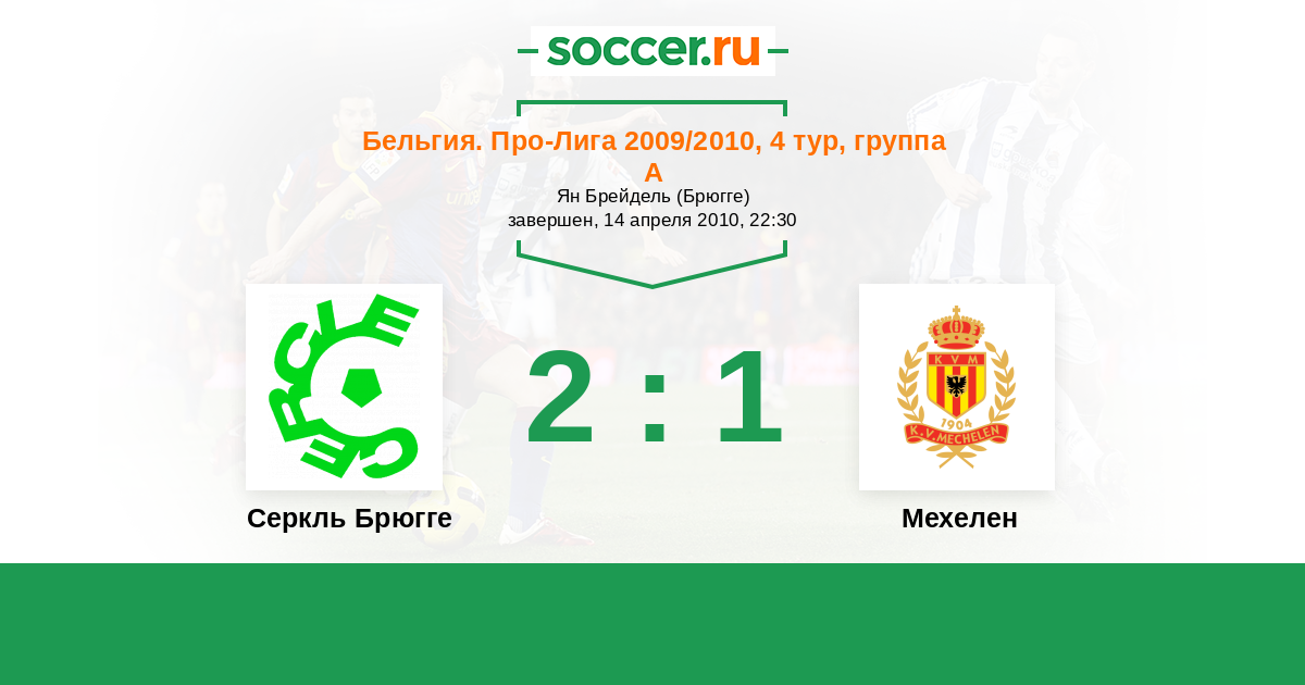 Бельгия. Про-Лига 10.04.2010 Мехелен Логотип футбольный клуб Мехелен 1:0 Логотип футбольный клуб Серкль Брюгге Серкль Брюгге
