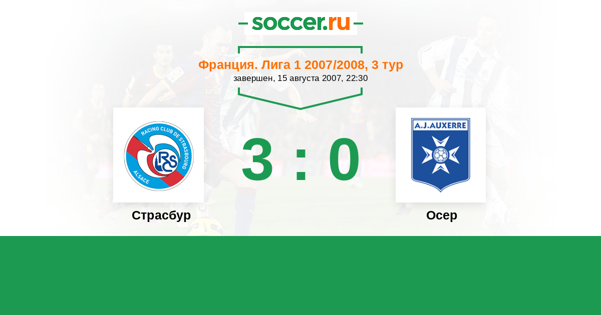 Франция. Лига 1 15.08.2003 Осер Логотип футбольный клуб Осер 3:2 Логотип футбольный клуб Страсбур Страсбур