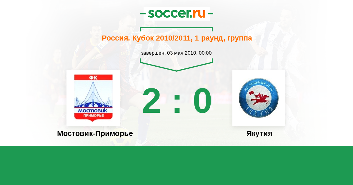 Россия. 2-й дивизион. Восток 15.05.2011 Мостовик-Приморье Логотип футбольный клуб Мостовик-Приморье (Уссурийск) 5:0 Логотип футбольный клуб Якутия (Якутск) Якутия