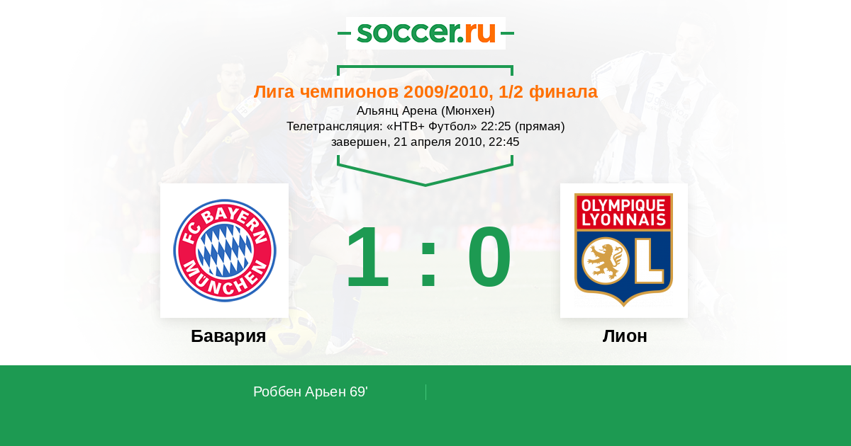 69' (1:0) Роббен Арьен (10) (Тимощук Анатолий (44))