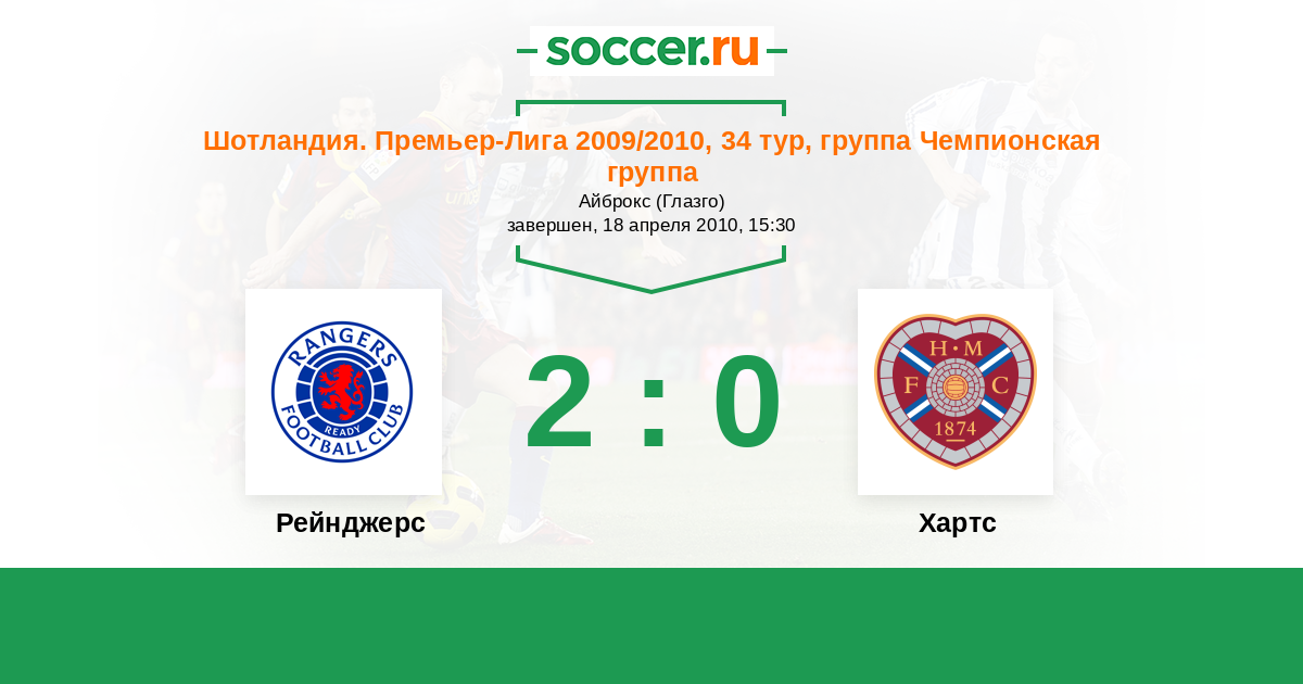 Шотландия. Премьер-Лига 03.05.2009 Рейнджерс Логотип футбольный клуб Рейнджерс (Глазго) 2:0 Логотип футбольный клуб Хартс (Эдинбург) Хартс