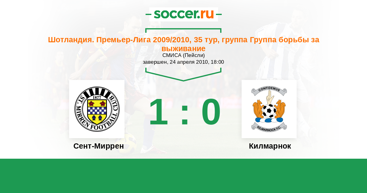 Шотландия. Премьер-Лига 02.01.2010 Сент-Миррен Логотип футбольный клуб Сент-Миррен (Пейсли) 1:0 Логотип футбольный клуб Килмарнок Килмарнок