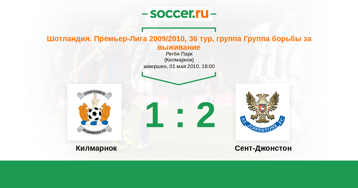 Шотландия. Премьер-Лига 03.03.2012 Килмарнок Логотип футбольный клуб Килмарнок 0:0 Логотип футбольный клуб Сент-Джонстон (Перт) Сент-Джонстон
