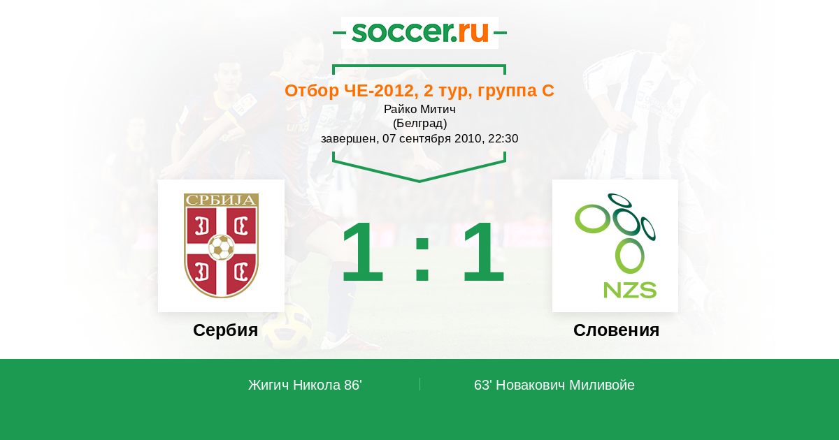 Протокол матча Сербия против Словения