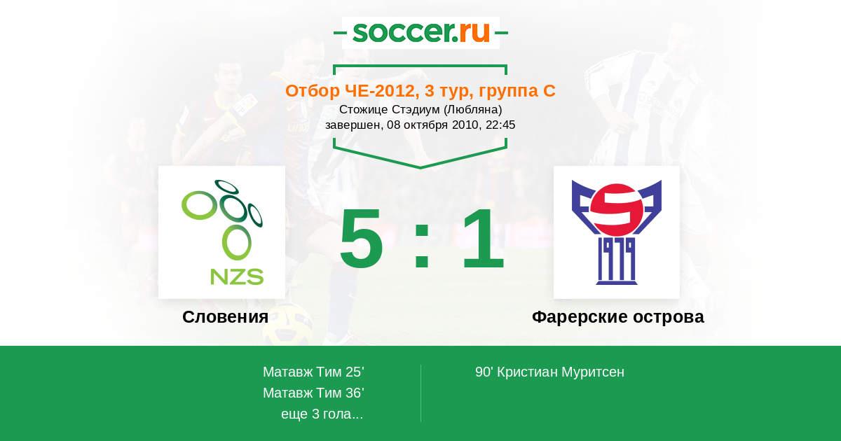 Протокол матча Словения против Фарерские острова