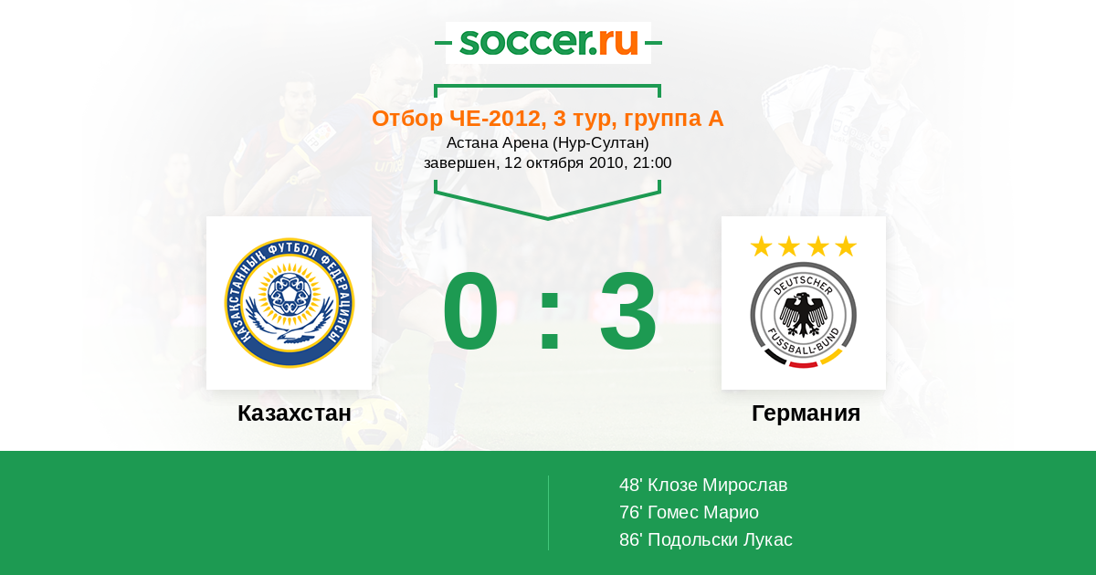 Протокол матча Казахстан против Германия