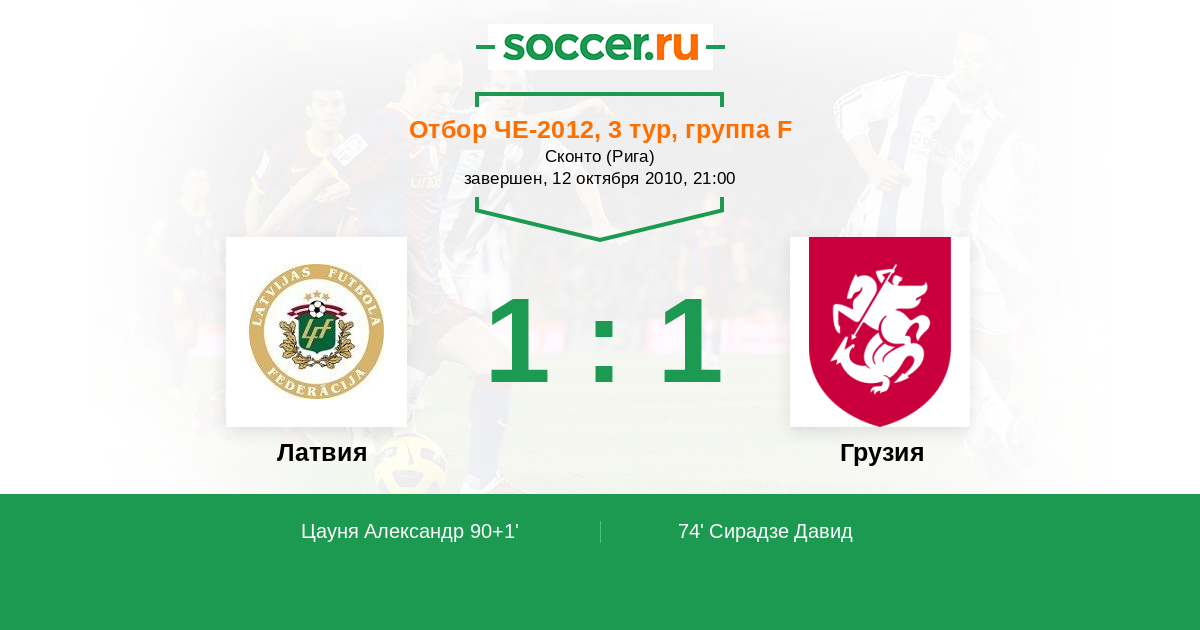 Протокол матча Латвия против Грузия
