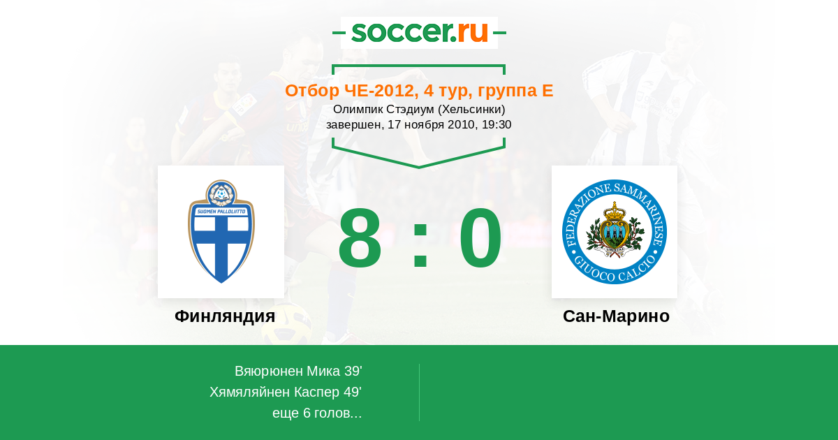 Протокол матча Финляндия против Сан-Марино