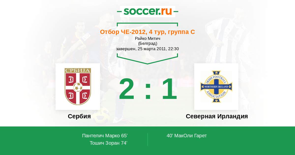 Протокол матча Сербия против Северная Ирландия